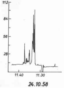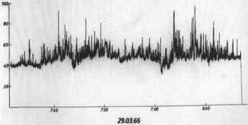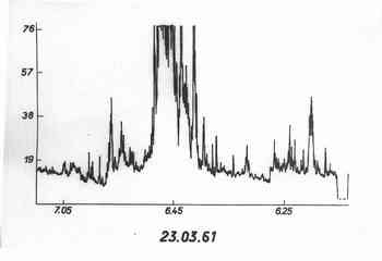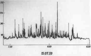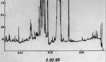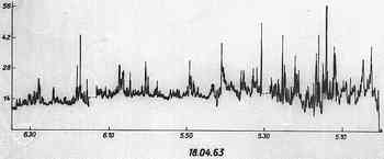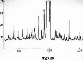 sensitivity of the radiometer varied repeatedly. The records were copied at a